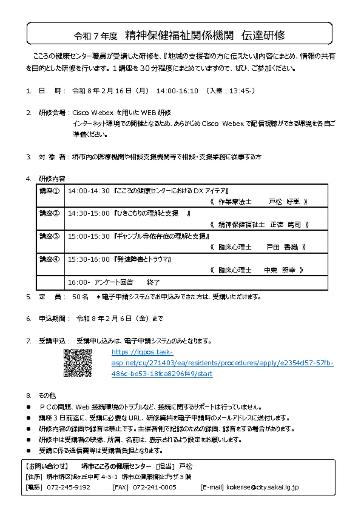 令和 7 年度 精神保健福祉関係機関 伝達研修